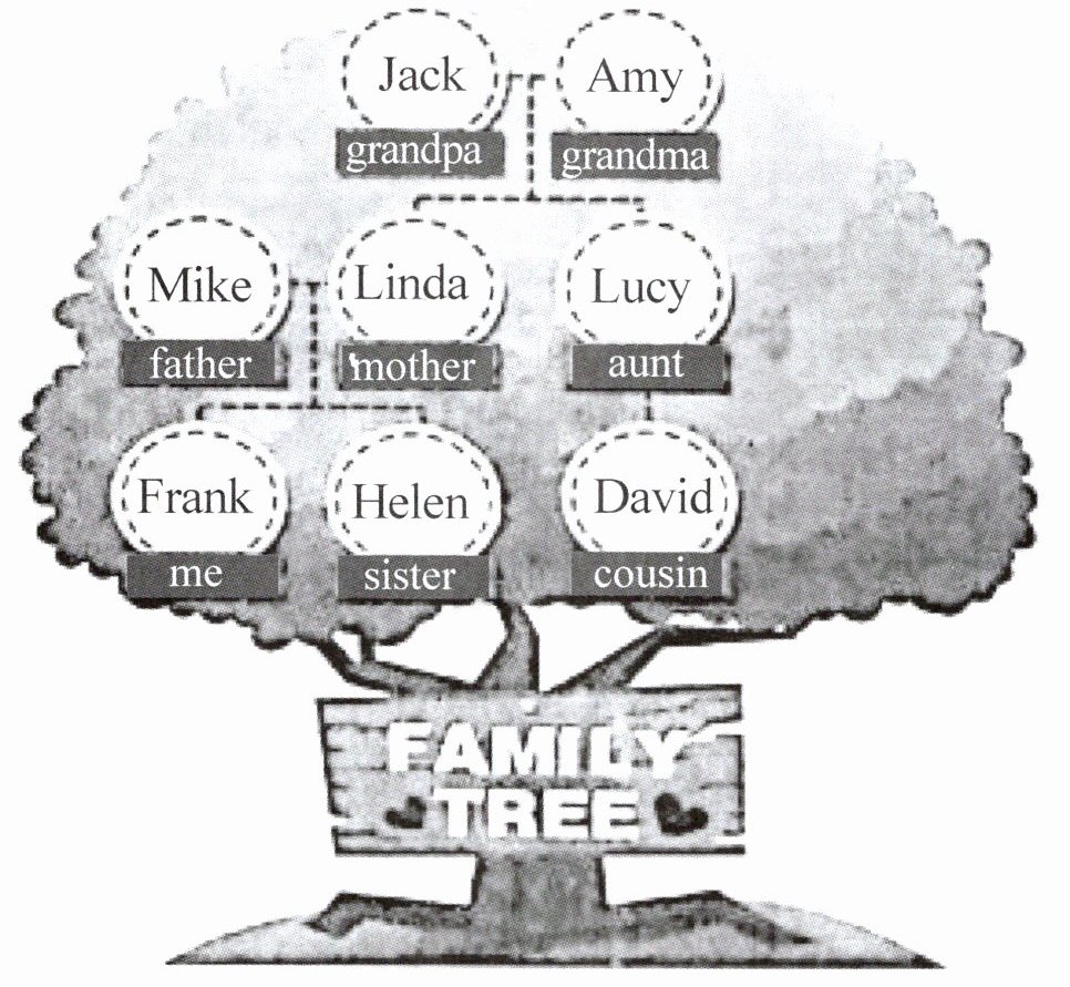 四、(Frank 分享了他绘制的家庭树。)根据所给家庭树,选择恰当的选项完成短文。