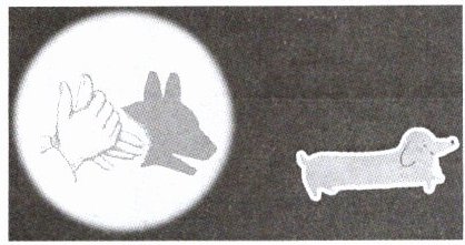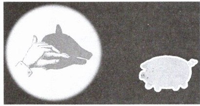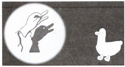 三、(同学们表演了精彩的手影动物秀。)判断下列句子与图片是( √ )否( × )相符。