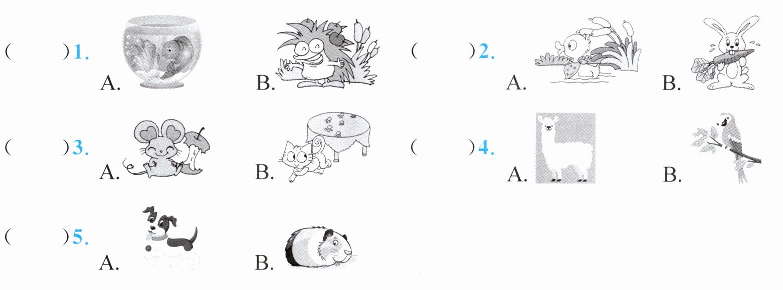 一、听单词,用数字 1~4 给下列图片排序。(读两遍)