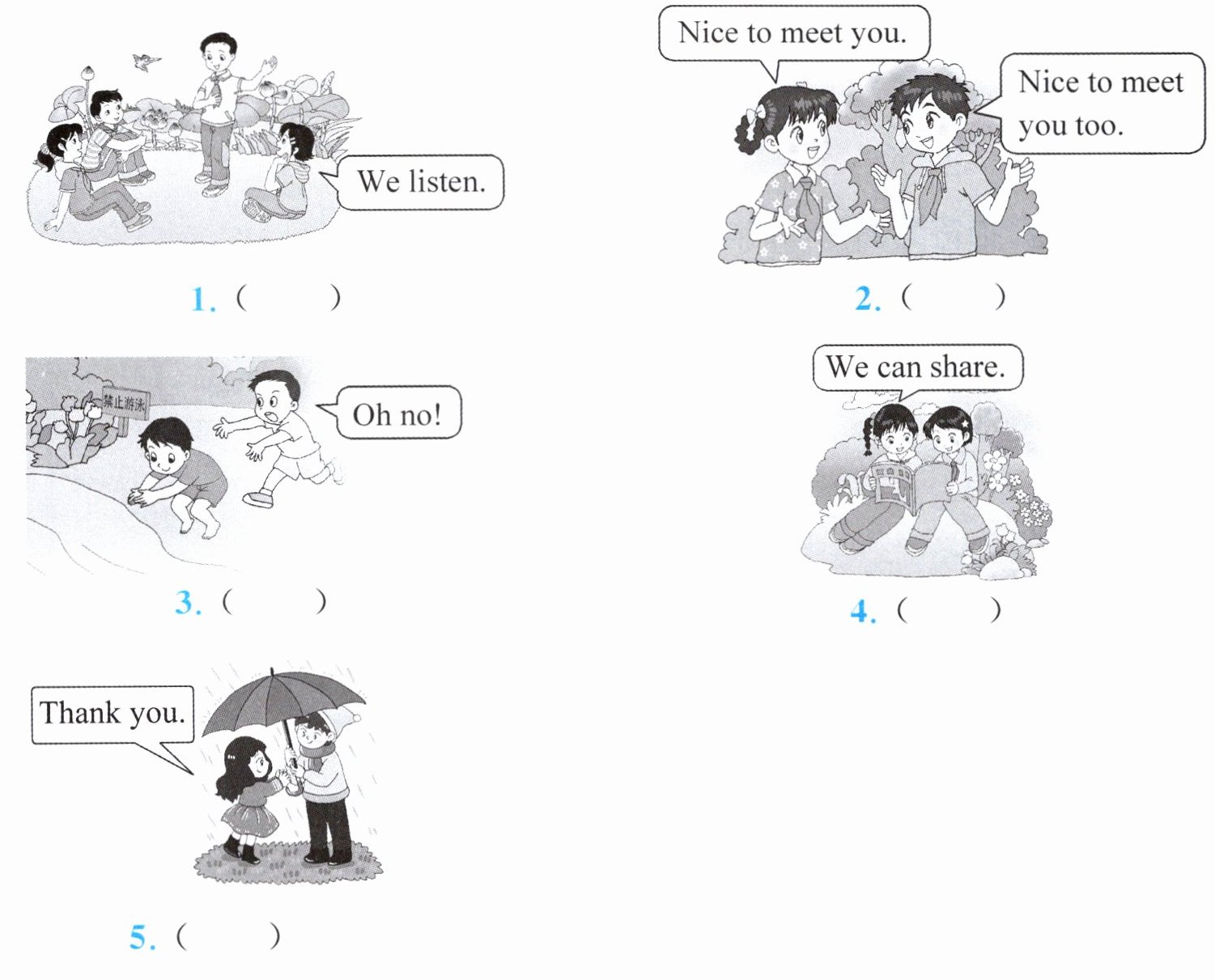一、(朋友之间友好相处有哪些表现?)判断下列同学的行为表现是(√)否(×)恰当。