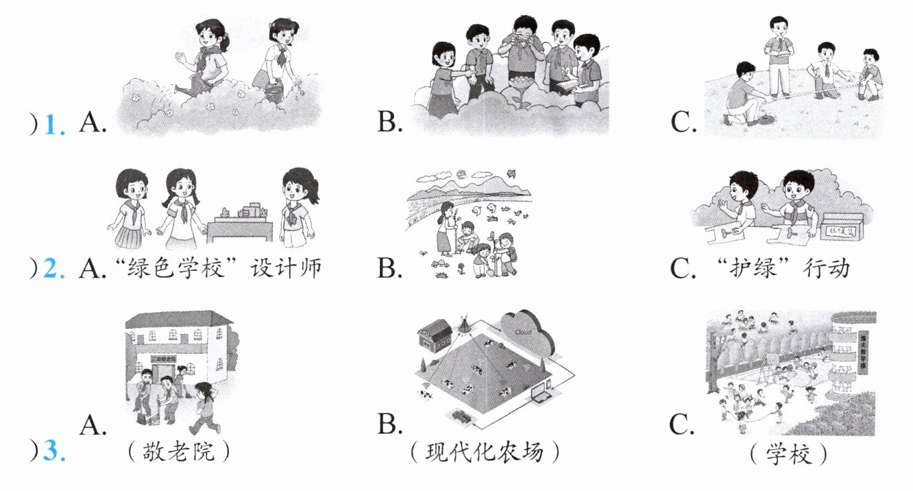 )2. A. “绿色学校”设计师 B. C. “护绿”行动(