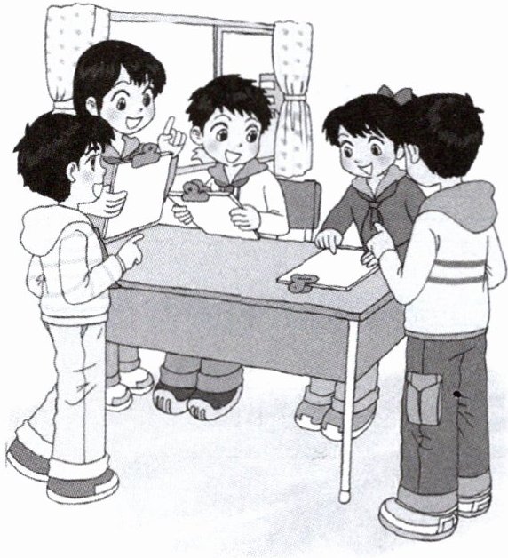 四、(同学们交流颜色喜好,合作完成绘画创作。)情境交际。 从方框里选择恰当的句子,补全对话。