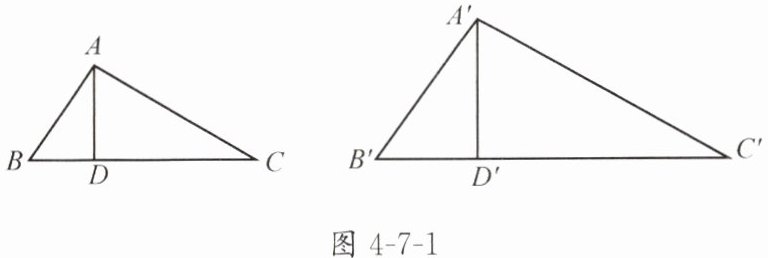 问题 1:如图 4-7-1,△ABC∽△A′B′C′,相似比为 k,它们对应边上的高的比为多少?