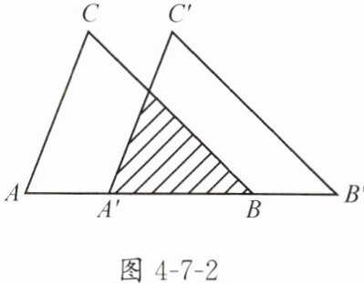【例 2】如图 4-7-2,把△ABC 沿 AB 平移到△A′B′C′的位置,它们重叠部分的面积是△ABC 面积的一半. 若 AB= $\sqrt{2}$,则此三角形移动的距离 AA′是多少?