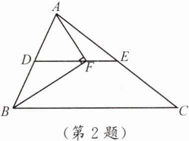 2. 如图,在△ABC 中,BF 平分∠ABC,AF⊥BF 于点 F,D 为 AB 的中点,连接 DF 并延长交 AC 于点 E. 若 AB = 10,BC = 16,则线段 EF 的长为(