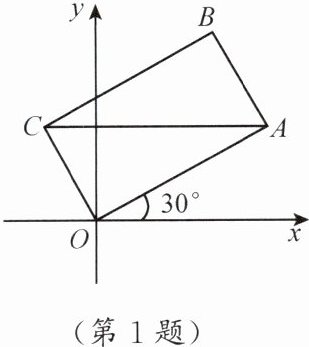 1. 如图,在平面直角坐标系中,矩形 $OABC$ 的对角线 $AC$ 平行于 $x$ 轴,边 $OA$ 与 $x$ 轴正半轴的夹角为 $30^{\circ}$,$OC = 2$,求点 $B$ 的坐标.
