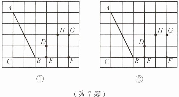 7. 如图,在方格纸中,△ABC 的三个顶点及 D,E,F,G,H 五个点都在小方格的顶点上. 现以点 D,E,F,G,H 中的三个点为顶点画三角形.