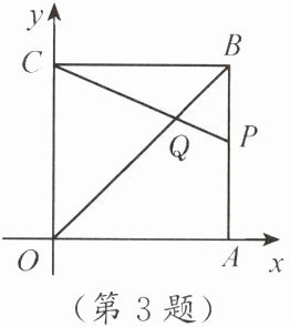3. 如图,在平面直角坐标系中,四边形 OABC 是边长为 2 的正方形,顶点 A,C 分别在 x,y 轴的正半轴上. 点 Q 在对角线 OB 上,且 QO = OC,连接 CQ 并延长交边 AB 于点 P,则点 P 的坐标为