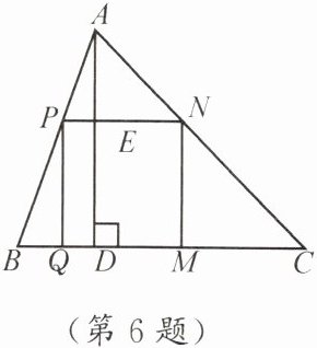 6. 如图,△ABC 是一个锐角三角形的余料,边 BC = 12 cm,高 AD = 8 cm,要把它加工成正方形零件,使正方形的一边在 BC 上,其余两个顶点分别在 AB,AC 上,求这个正方形零件的边长.