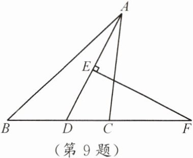 9. 如图,在△ABC 中,AD 为∠BAC 的平分线,AD 的垂直平分线 EF 与 AD 交于点 E,与 BC 的延长线交于点 F. 若 CF = 4,BC = 5,求 DF 的长.