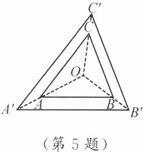 5. 如图,$ \triangle ABC $ 与 $ \triangle A'B'C' $ 是位似图形,点 $ O $ 是位似中心. 若 $ OA = 2AA' $,$ S_{\triangle ABC} = 8 $,则 $ S_{\triangle A'B'C'} = $