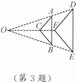 3. 如图,$ \triangle ABC $ 与 $ \triangle DEF $ 是位似图形,相似比为 $ 2:3 $. 已知 $ AB = 4 $,则 $ DE $ 的长是