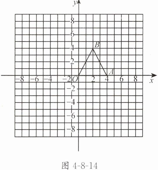 如图 4-8-14,在平面直角坐标系中,$\triangle OAB$三个顶点的坐标分别是 $O(0,0)$,$A(4,0)$,$B(2,4)$. 回答下列问题: