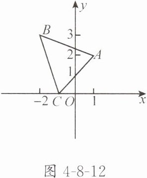 1. 如图 4-8-12,已知$\triangle ABC$三个顶点的坐标分别为 $A(1,2)$,$B(-2,3)$,$C(-1,0)$,把它们的横坐标和纵坐标都扩大到原来的 2 倍,得到点 $A'$,$B'$,$C'$. 下列说法正确的是(
