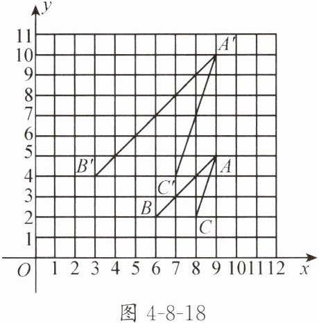 1. 如图 4-8-18,$\triangle ABC与\triangle A'B'C'$是位似图形,且顶点都在格点上,则位似中心的坐标是