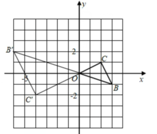 (1)以点 $O(0,0)$ 为位似中心,按相似比 $2:1在位似中心的异侧将\triangle OBC放大为\triangle OB'C'$,放大后 $B$,$C$ 两点的对应点分别为 $B'$,$C'$. 画出$\triangle OB'C'$,并写出 $B'$,$C'$ 的坐标:$B'$(