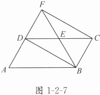 【例 2】如图 1-2-7,在▱ABCD 中,E 是边 CD 的中点,连接 BE 并延长,交 AD 的延长线于点 F,连接 BD,CF。