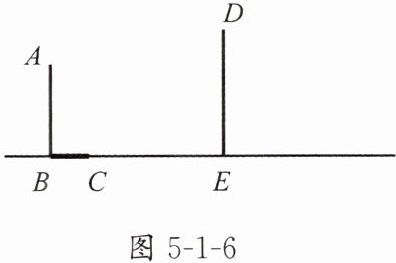 3. 如图 5-1-6,AB 和 DE 是直立在地面上的两根立柱,AB = 5 m,某一时刻 AB 在阳光下的投影 BC = 2 m.