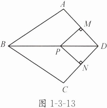 5. 如图 1-3-13,在四边形 ABCD 中,AB= BC,对角线 BD 平分∠ABC,P 是线段 BD 上一点,过点 P 作 PM⊥AD,PN⊥CD,垂足分别为 M,N.