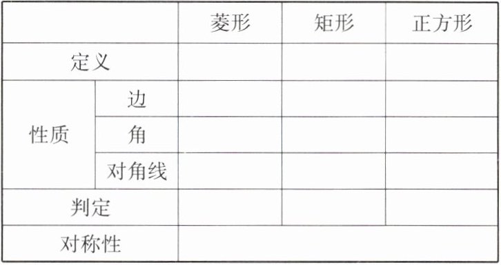 - 菱形:一组邻边相等的平行四边形叫做菱形。
