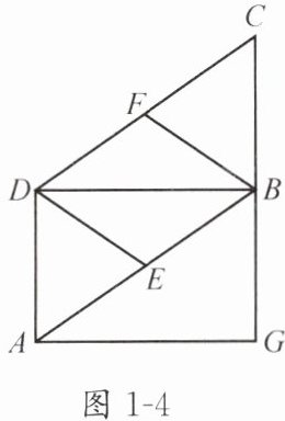 5. 如图 1 - 4,在$□ ABCD$中,$E$,$F$ 分别是边 $AB$,$CD$ 的中点,$BD$ 是四边形 $BEDF$ 的对角线,过点 $A$ 作 $AG // BD$交 $CB$ 的延长线于点 $G$。