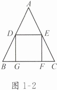 3. 如图 1 - 2,在$\triangle ABC$中,$AB = AC$,$D$,$E$ 分别是边 $AB$,$AC$ 的中点,点 $G$,$F$ 在 $BC$ 边上,四边形 $DEFG$ 是正方形。若 $DE = 2$,则 $AC$ 的长为(
