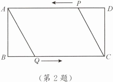 2. 如图,在$□ ABCD$ 中,$\angle D = 90^{\circ}$,$AB = 4$ cm,$BC = 8$ cm,点 $P$ 从点 $D$ 出发向点 $A$ 运动,同时点 $Q$ 从点 $B$ 出发向点 $C$ 运动,$P$,$Q$ 的速度都是 $1$ cm/s。