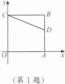 1. 如图,正方形 $OABC$ 的两边 $OA$,$OC$ 分别在 $x$ 轴、$y$ 轴上,点 $D(5, 3)$ 在边 $AB$ 上。若以点 $C$ 为中心把$\triangle CDB$ 旋转 $90^{\circ}$,则旋转后点 $D$ 的对应点 $D'$ 的坐标是(