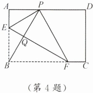 4. 如图,在矩形 $ABCD$ 中,点 $E$,$F$ 分别在边 $AB$,$BC$ 上,且 $AE = \frac{1}{3}AB$。将矩形沿直线 $EF$ 折叠,使点 $B$ 恰好落在 $AD$ 边上的点 $P$ 处,连接 $BP$ 交 $EF$ 于点 $Q$,则有下列结论:①$EF = 2BE$;②$PF = 2PE$;③$FQ = 4EQ$;④$\triangle PBF$ 是等边三角形。其中,正确的结论是(