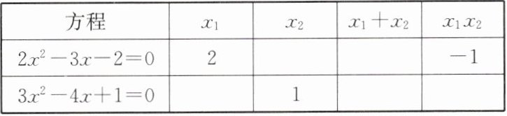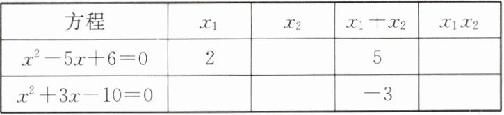 方 程 $x_{1}$ $x_{2}$ $x_{1}+x_{2}$ $x_{1}x_{2}$