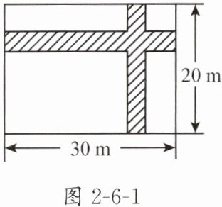 如图2-6-1,在长为30m,宽为20m的矩形地面上修建两条同样宽且互相垂直的道路,余下的作为耕地.若耕地面积为$551m^2,$则道路的宽为多少米?