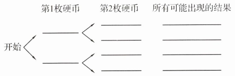 (3)在第 1 枚硬币正面朝上的情况下,第 2 枚硬币可能出现哪些结果?它们发生的可能性是否一样?如果第 1 枚硬币反面朝上,情况是否一样?