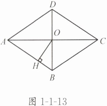3. 如图 1 - 1 - 13,菱形 ABCD 的对角线 AC,BD 相交于点 O,且 AC = 8,BD = 6,过点 O 作 OH⊥AB,垂足为 H,则点 O 到边 AB 的距离 OH 等于