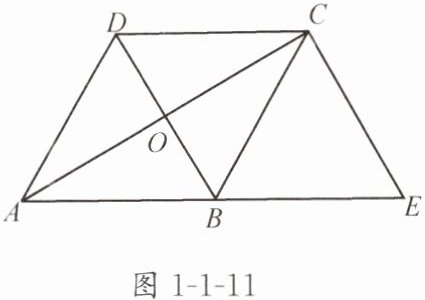 【例 1】如图 1 - 1 - 11,已知菱形 ABCD 的两条对角线相交于点 O,延长 AB 至点 E,使 BE = AB,连接 CE.