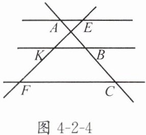 如图 4 - 2 - 4,$ AE // KB // FC $. 若 $ AB = 3\ cm $,$ BC = 5\ cm $,$ EK = 4\ cm $,则 $ \frac{EK}{KF} = $