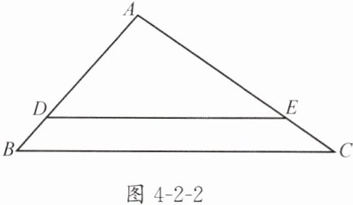 2. 如图 4 - 2 - 2,在 $ \triangle ABC $ 中,$ DE // BC $,$ AC = 4 $,$ AB = 3 $,$ EC = 1 $,求 $ AD $ 和 $ BD $ 的长.