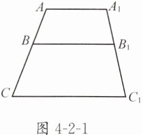 1. 如图 4 - 2 - 1,已知 $ AA_1 // BB_1 // CC_1 $,$ AB = 2 $,$ BC = 3 $,$ A_1B_1 = 1.5 $,求 $ B_1C_1 $ 的长.