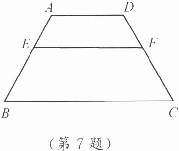 7. 如图,在梯形 $ABCD$ 中,$AD// BC$,$E$,$F$ 分别为 $AB$,$CD$ 上一点,且梯形 $AEFD\backsim$梯形 $EBCF$. 若 $AD = 4$,$BC = 9$,试求$\frac{AE}{EB}$的值.