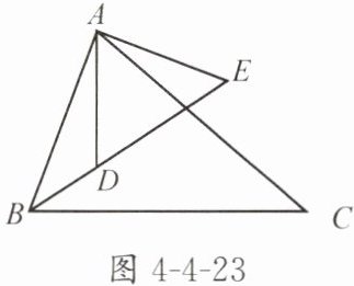 3. 如图4-4-23,点D在△ABC内,连接BD并延长到点E,连接AD,AE. 若∠DAB= 20°,$\frac{AB}{AD}= \frac{BC}{DE}= \frac{AC}{AE}$,则∠EAC=