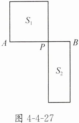 4. 如图4-4-27,点P是线段AB的黄金分割点,且AP>BP. 设以AP为边的正方形的面积为$S_1$,以PB为宽,以AB为长的矩形的面积为$S_2$,试比较$S_1与S_2$的大小.