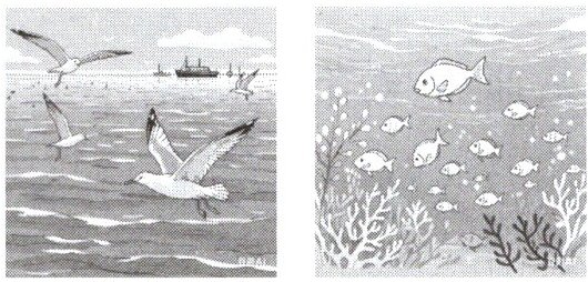 2. 请选择右边的一张图片,给游客们详细介绍美丽的西沙群岛。___