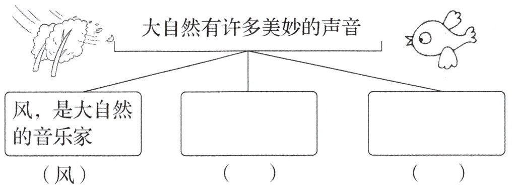 2. 风声轻吟,水声潺潺,大自然的音乐家们正在一起表演呢!请你补写句子。
