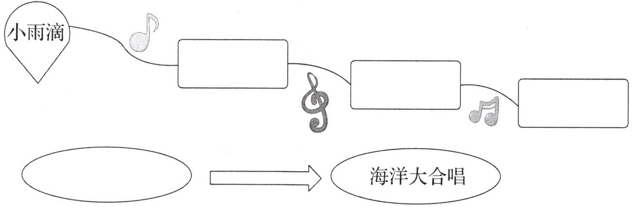 2. 根据选文内容,完成关于“小雨滴汇集后”的思维导图。