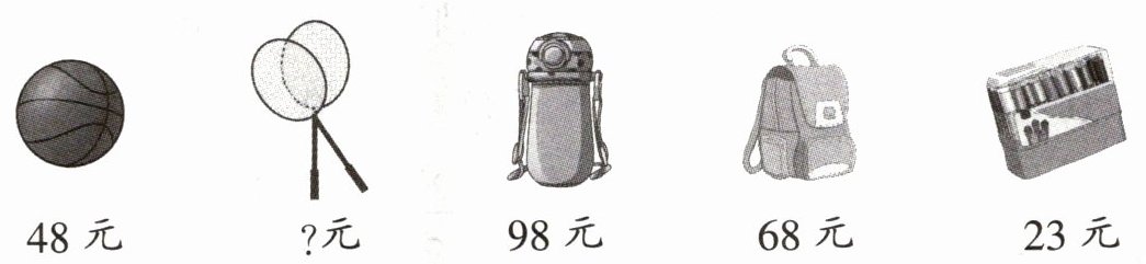 (3)买2个篮球需要多少钱?$48×2 = 96$(元),答:买2个篮球需要96元。(答案不唯一)