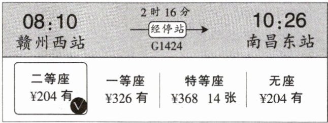4. 张老师和其他4位老师一起外出培训,要买从赣州西到南昌东的二等座高铁票,1000元够吗?