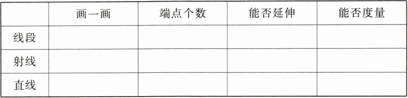 | | 画一画 | 端点个数 | 能否延伸 | 能否度量 |