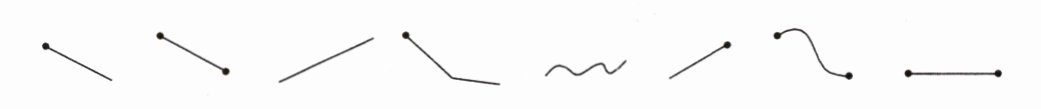| 直线 | (画直线,两端无限延伸) | 0 | 能(向两端) | 不能 |
