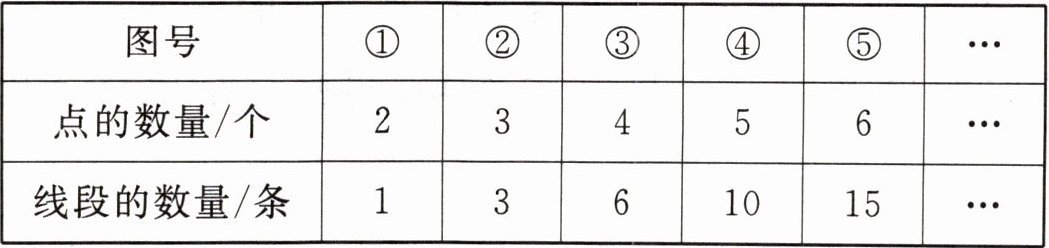 | 线段的数量/条 | 1 | 3 | 6 | 10 | 15 | ... |