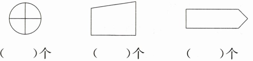 2. 用直角符号分别标出下面图形中的直角,并数一数每个图形各有几个直角。