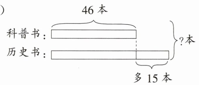 (1)分步列式:46+15=61(本) 46+61=107(本) 综合算式:46+(46+15)=107(本)